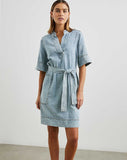 The 'Chancey Short Sleeve Midi Dress' from Rails is a denim dress dream! This stunning midi is cut from soft faded denim and features short sleeves, a flattering v-neckline with mandarin collar, two front pockets and a removable waist belt. Pair with leather sandals for a timeless look that's both effortlessly chic and comfy.