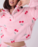 Get cozy in this delightful pink fuzzy faux fur jacket! Featuring a playful cherry pattern, this jacket adds a sweet touch to any outfit. Perfect for layering, it will keep you warm while making a fruity fashion statement. Bring on the cherry vibes!