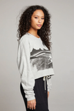 With a softly monotone landscape on a heather gray background, it’s all about the beauty of the great outdoors. Whether you love to hike, ski, or just picnic, this one’s for the mountain girls. A generous fit and cropped styling makes this simple look endlessly flattering.