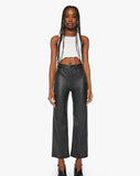 Faux real. High-waisted pants with a wide straight leg, zip fly and clean ankle-length inseam. Cut from a buttery soft faux leather fabric in black.