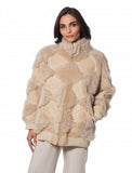 26” Double Face Shearling Lamb Argyle pattern Jacket Stand collar 2 side pockets Double zip closure Cashmere wool blend cuffs and waistband Available Color: Warm Sand