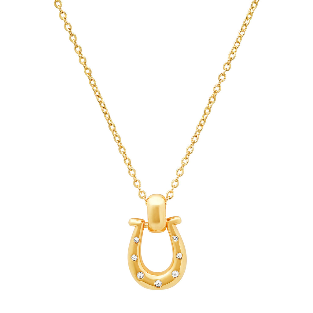 Gold Horseshoe Necklace with Embedded CZ Stones