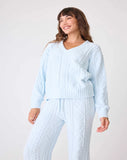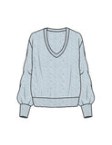 There's nothing better than an easy V-neck sweater when seasons change. A super soft, easy-to-dress-up top in textured cable knit. Model is 5' 8 1/2", wearing size small.