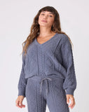 There's nothing better than an easy V-neck sweater when seasons change. A super soft, easy-to-dress-up top in textured cable knit. Model is 5' 8 1/2", wearing size small.