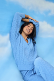 Dreamy-soft and lounge-ready, this chenille V-neck top was made for the kind of days when you cancel plans just to stay in. The bright blue knit has a classic cable pattern and a plush, velvety touch that’s pure bliss. With its relaxed fit and long sleeves, it’s your go-to for movie marathons, breakfast in bed, or just curling up with a good book.