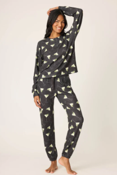 Toast the season in comfort. crafted from peachy-soft knit with a festive martini glass print, complete with green olives. The relaxed long sleeve topmake it a merry choice for nights in.
