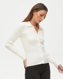 The button down gets bundled up. Miri has the silhouette of a button down shirt with the soul of a fitted sweater, thanks to our body-hugging Fashioned Rib.