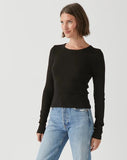 Cropped and perfect for layering, Orion is a long sleeve tee with a crew neck and a form flattering fit that has excellent recovery for a long lasting shape.