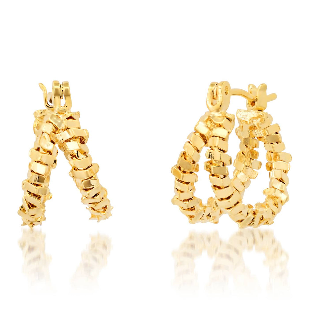 Experience the elegance with Tai Jewelry's Twisted Gold Split Huggies. Born from an artistic background in Bangkok and refined in the trendsetting boutiques of Los Angeles, these earrings are a testament to high-quality fashion jewelry with fine finishing. Each piece is a testament to the art of handcrafted jewelry, supporting artisans in Thailand. These huggies are perfect for those who appreciate global inspirations. Enjoy the fusion of culture and craftsmanship.